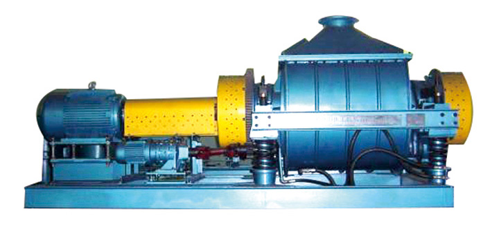 振動磨機是新型制粉設備,該機是利用圓筒的高頻振動,使筒體中的研磨介質(zhì)依靠慣性力沖擊物料,磨介通常為Φ16-Φ36mm的圓鋼,鋼棒經(jīng)過滲碳和淬火處理,硬度達到HRC55以上。入料粒度>15mm時取較大直徑,入料粒度<15mm時取較小直徑,并采用兩種以上規(guī)格鋼棒(鋼球)搭配使用。工作時,電動機通過撓性連軸器和萬向連軸器帶動帶有偏心重錘的激振器的軸旋轉,使筒體產(chǎn)生振動,筒內(nèi)的磨介和物料在筒內(nèi)翻轉、沖擊,使物料在短時間內(nèi)得到粉碎。